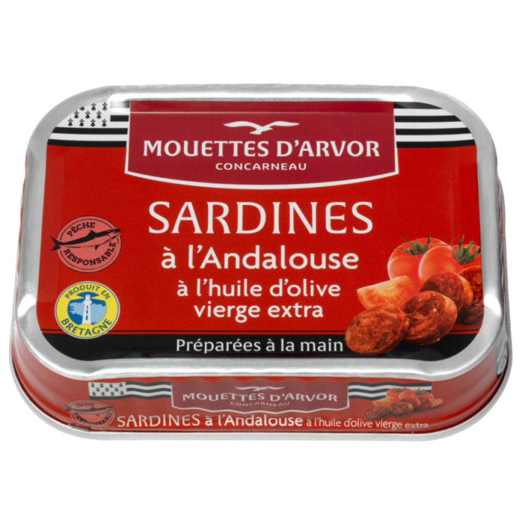 A szardínia andalúz mártásban a mediterrán konyha egyik legizgalmasabb fogása: a tenger frissessége, paradicsomos andalúz szósz gazdagon fűszerezett, enyhén csípős jegyei és a spanyol chorizo kolbász füstös, paprikás íze különleges harmóniát alkot. A Mouettes d’Arvor márka híres kiváló minőségű halkonzerveiről, melyek a kézműves hagyományokatötvözik a modern gasztronómiával.